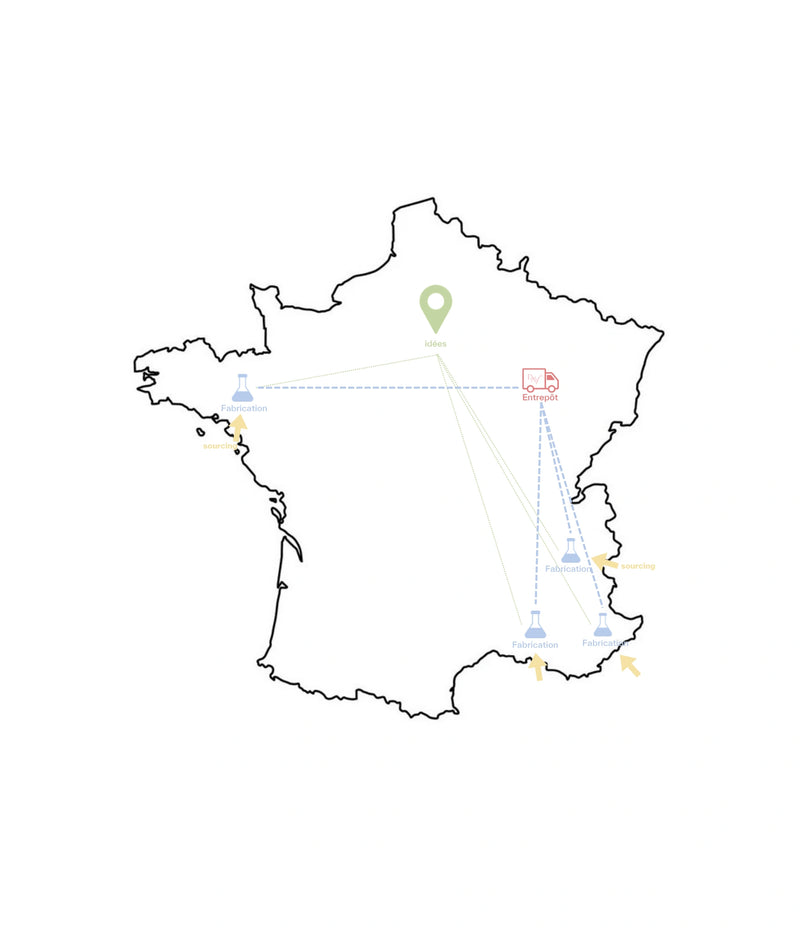 Europe du Nord. Nos packaging sont faits majoritairement en France, le reste est fait dans des pays limitrophes à la France (Belgique et Italie).